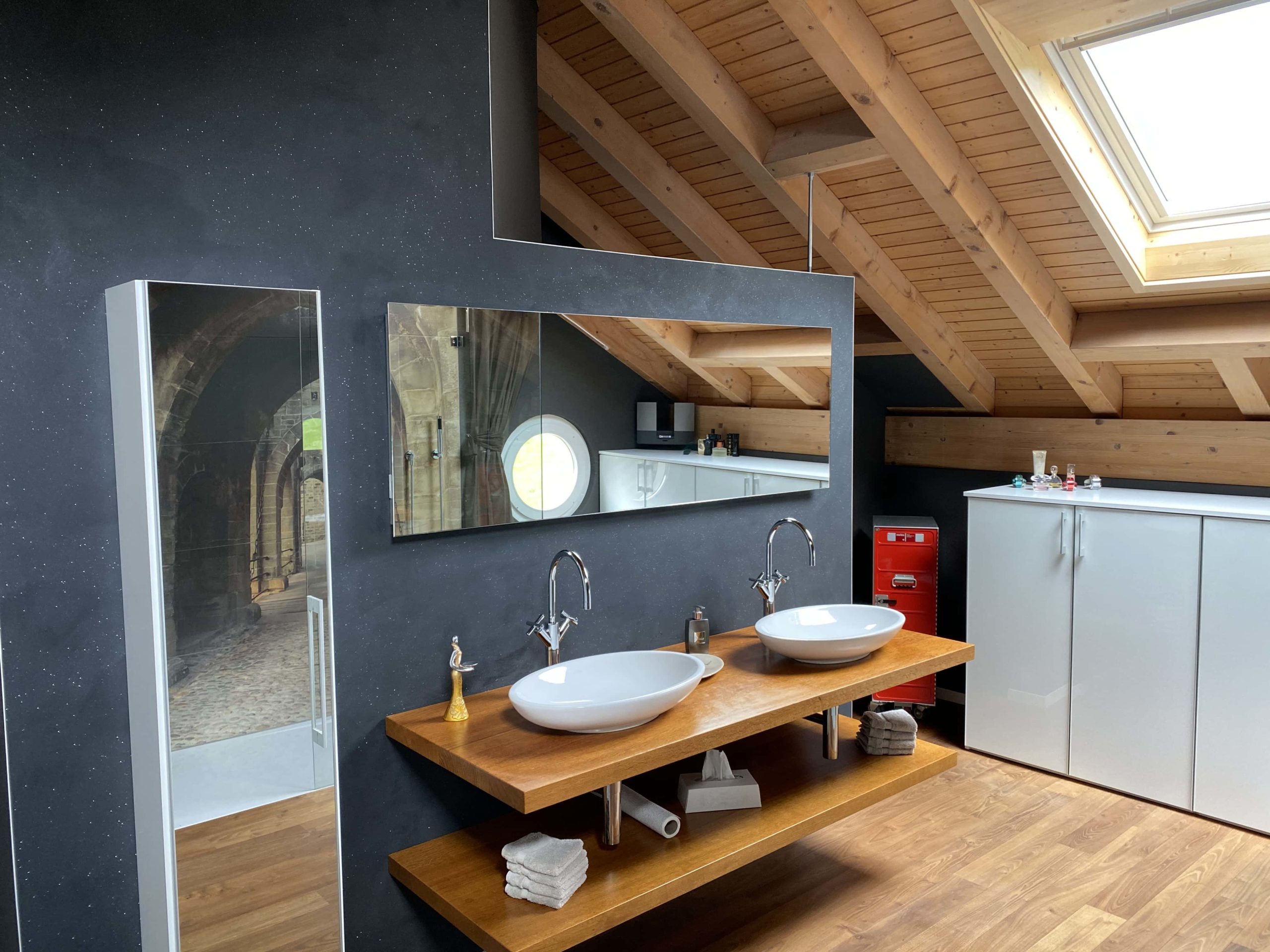 Nebst sämtlichen Malerarbeiten führen wir auch gerne exklusive Gestaltungsarbeiten wie Stein- und Holzimitationen, Vergoldungen aller Art, Spachtelungen in allen Variationen, verschiedene fugenlos Beschichtungen auch auf bestehende „Plättli“, sowie Lasur-, Tapezier- und Dekorationsarbeiten aus.